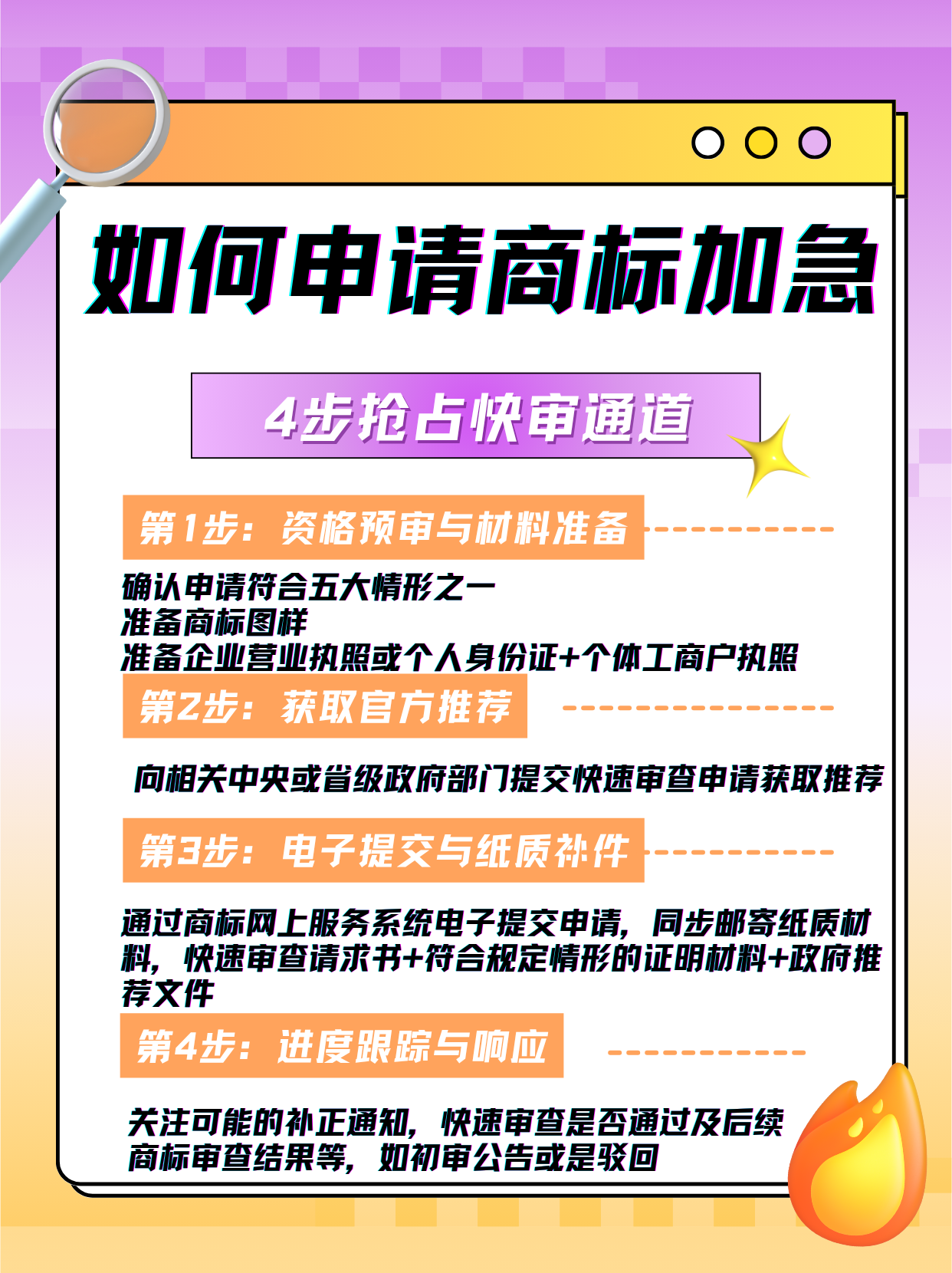 总有人问“商标注册能加急吗”,可能之前的回答都是“不能”,但是,国知局近日发布的《商标注册申请快速审查办法》,为特定情形的商标注册申请开辟了一条 “快车道”。