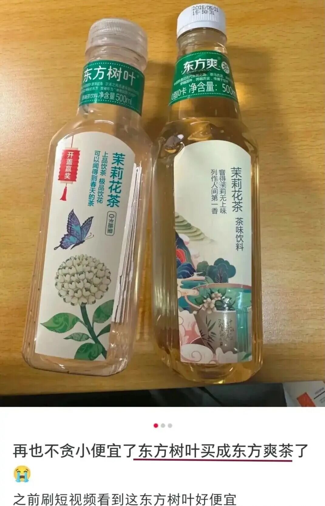 今年7月,有消费者购买“东方爽茶”等产品,误以为是“东方树叶”,在社交平台吐槽以低价如17.9元一箱购买,包装高度相似,该产品已售出3.2万瓶。