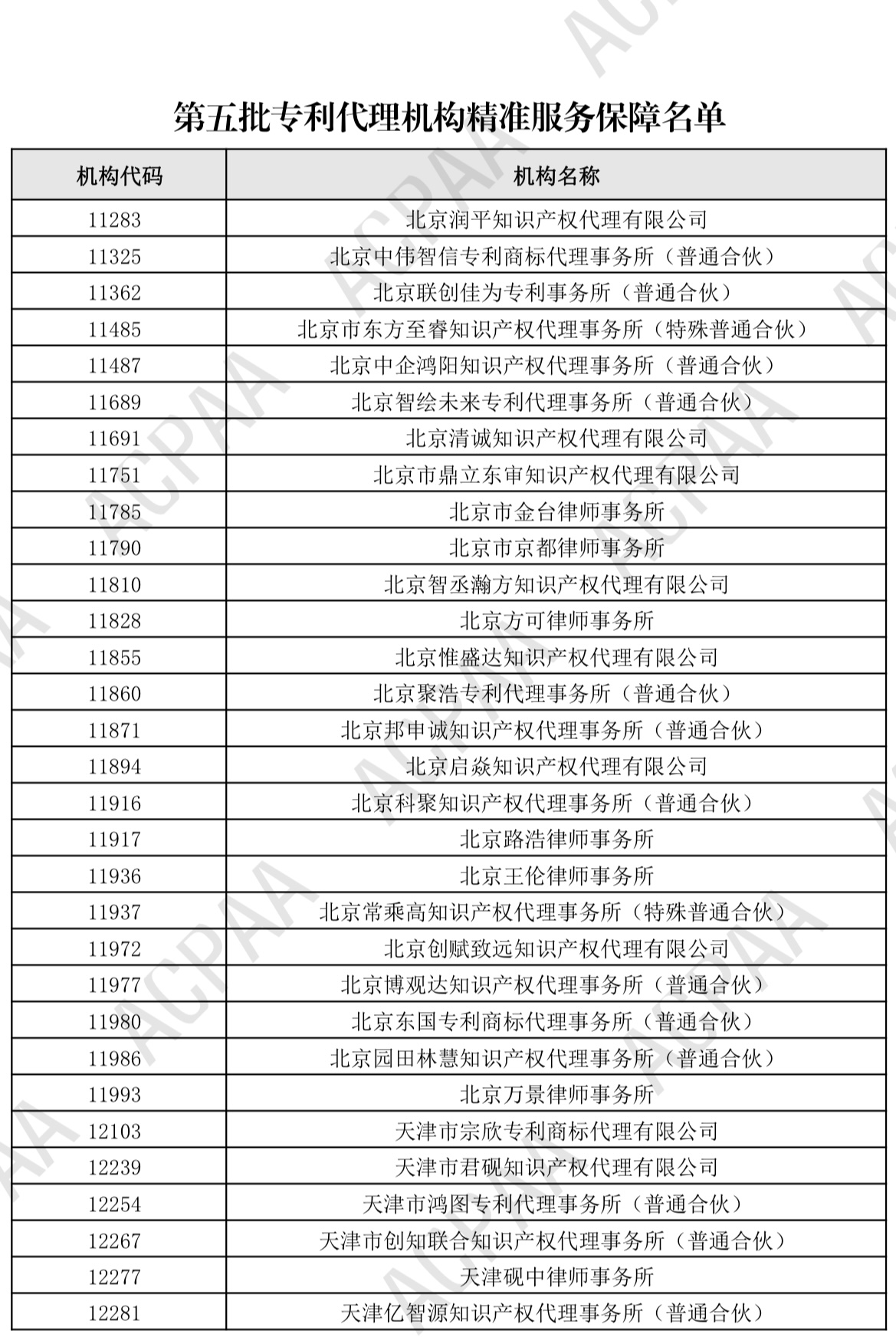 中华全国专利代理师协会(以下简称协会)持续推进优质专利代理机构推荐工作,现确定并公布第五批专利代理机构精准服务保障名单(名单见附件)。